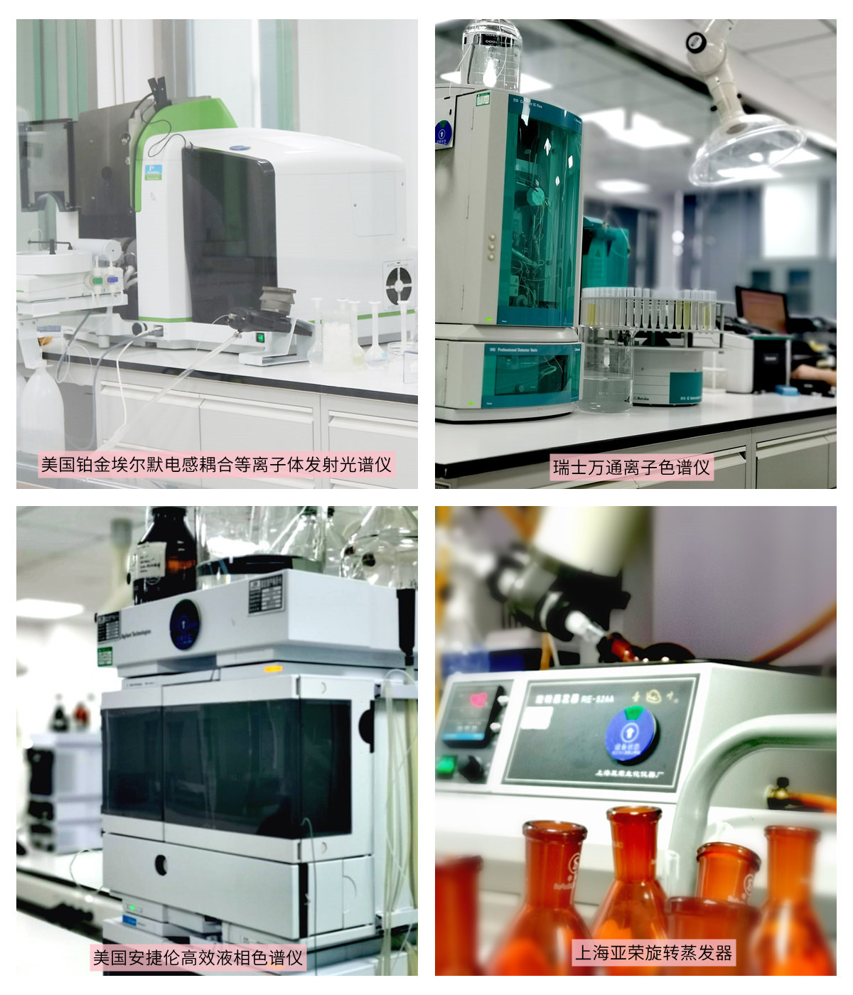 目前檢測中心實驗室添置配備了200余臺檢測儀器設備,其中包括高效液相色譜儀、氣相色譜儀、電感耦合等離子體發射光譜儀、原子吸收光譜儀等大型進口檢測設備20臺套,設施設備總價值400余萬元,可以開展食品中常規理化、維生素、礦物質和微生物、重金屬等50多項檢測。其中美國珀金埃爾默公司生產的電感耦合等離子體發射光譜儀,原子吸收光譜儀,原子熒光分光光度計,可以分析食品中鈣、鐵、鋅、鈉、鉀等幾十種元素,有毒物質(鉛鎘無機砷汞)。美國安捷倫科技公司5臺高效液相色譜儀,1臺氣相色譜儀,1臺離子色譜儀,主要用于檢測食品中維生素、真菌毒素、脂肪酸等。還配置有瑞士萬通的離子色譜,可以開展食品中硝酸鹽、亞硝酸鹽和低聚果糖的檢測。檢測中心所有設備實行專人負責和標識管理,維護保養良好,所有設備按規定的檢定校準周期進行了檢定、校準。