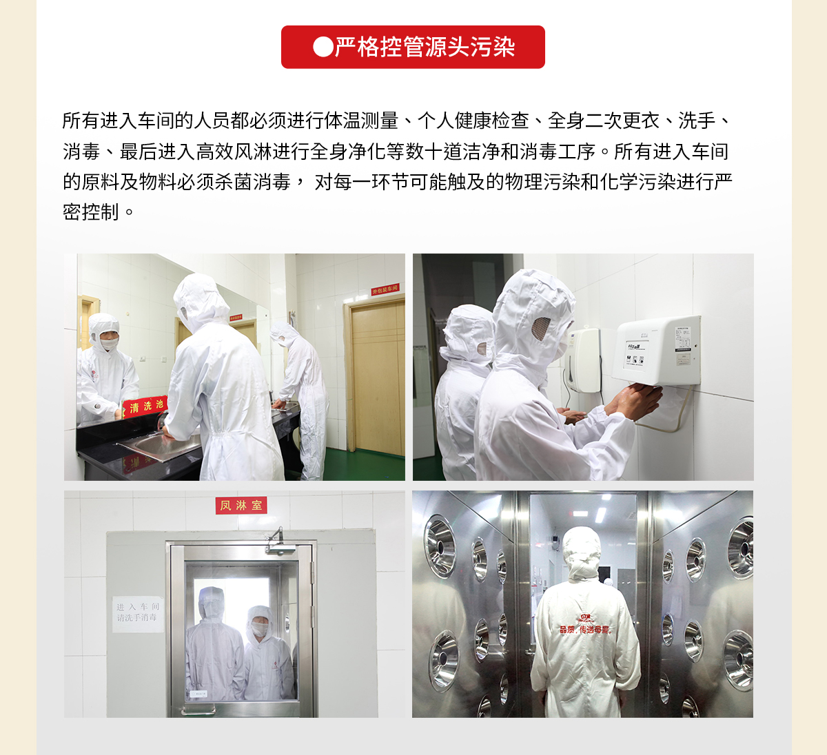 方廣將生產(chǎn)車間分隔為準(zhǔn)潔凈區(qū)、潔凈區(qū)、一般作業(yè)區(qū)、每個(gè)區(qū)域的人員從衣服顏色上進(jìn)行分類。避免相互交叉污染、同時(shí)通過臭氧、紫外、等離子等一系列的殺菌方式保證車間的清潔衛(wèi)生,每周進(jìn)行涂抹,開展沉降菌、浮游菌的檢測(cè),驗(yàn)證車間清潔消毒的效果。公司已通過十萬級(jí)潔凈室的檢測(cè),保證了車間的衛(wèi)生要求、確保了產(chǎn)品的質(zhì)量。