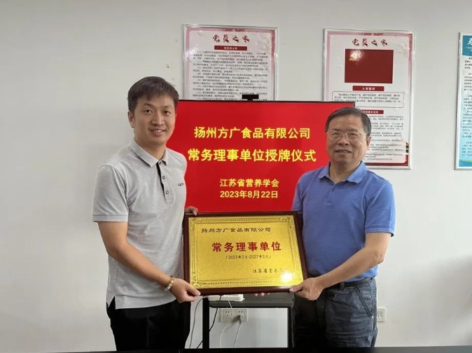 揚州方廣食品有限公司積極支持、參與學會活動,重視營養(yǎng)學術,努力提高科研水平,并且以高標準嚴要求的生產(chǎn)環(huán)境,科學嚴謹?shù)纳a(chǎn)工藝流程管理,先進的生產(chǎn)設備和技術,來確保產(chǎn)品的營養(yǎng)與安全。2023年8月經(jīng)過學會考察,決定授予揚州方廣食品有限公司常務理事單位,并舉行了授牌儀式,鼓勵其再接再厲,努力成為行業(yè)表率。