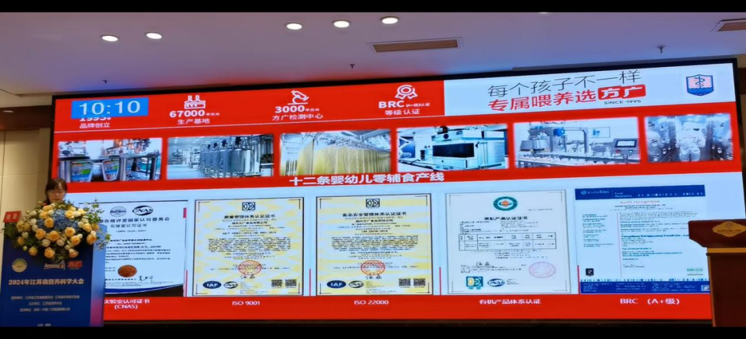 江蘇省營養(yǎng)學(xué)會(huì)承辦或協(xié)辦的營養(yǎng)科學(xué)大會(huì),一直以來是營養(yǎng)科技工作者、醫(yī)生等熱烈參加的營業(yè)科學(xué)盛會(huì),方廣積極參與和支持各類營業(yè)科技學(xué)術(shù)活動(dòng)。在去年的2023長三角營養(yǎng)科學(xué)大會(huì)上,著名兒童營養(yǎng)專家盛曉陽教授做了“肉泥作為嬰兒首選輔食研究”報(bào)告,與大家分享新版《中國居民膳食指南》中建議嬰兒輔食中首選添加肉泥、肝泥、強(qiáng)化鐵的嬰兒谷粉等富鐵的泥糊狀食物的意義,尤其是重視添加肉泥類食物,主要是為了引起家長對肉泥類輔食補(bǔ)充鐵和其他優(yōu)質(zhì)微量營養(yǎng)素的重視,改變輔食就是米粉的錯(cuò)誤理念,為嬰幼兒喂養(yǎng)提供科學(xué)指導(dǎo)。當(dāng)事,盛曉陽教授講課中例舉了方最新研發(fā)的嬰幼兒肉泥系列產(chǎn)品,適合作為嬰兒輔食使用。